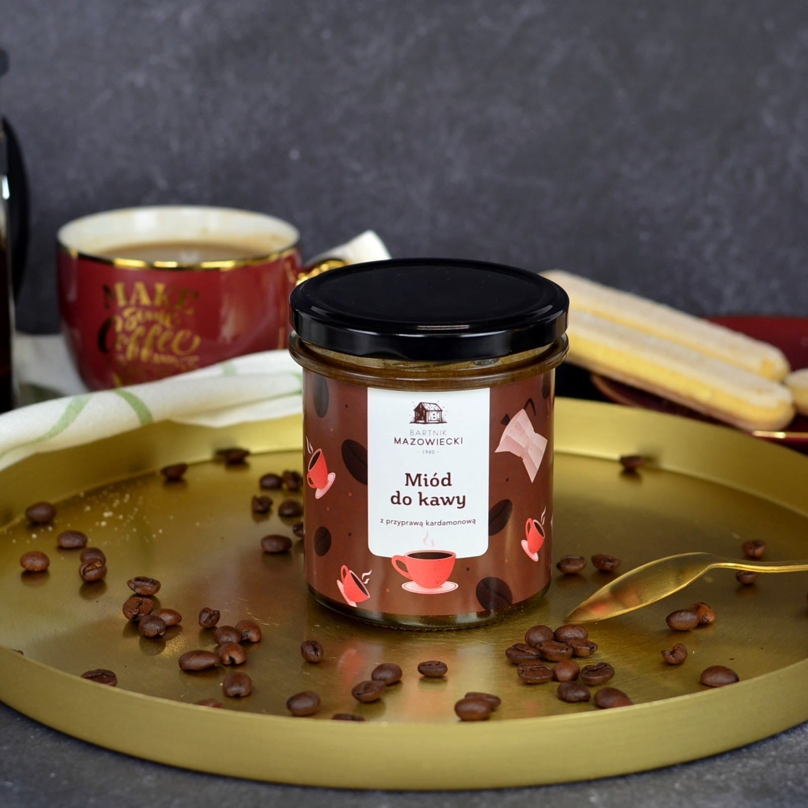 Uwielbiasz słodzoną kawę, a zarazem chciałbyś ograniczyć spożycie białego cukru? Mamy na to sposób, a jest nim miód do kawy. To apetyczny produkt, którego formuła opiera się wyłącznie na naturalnych składnikach. Podstawę stanowi wielokwiatowy miód, pochodzący z samego serca Mazowsza. Pewnego jesiennego wieczoru zadaliśmy sobie pytanie, co sprawi, że miód stanie się idealnym dodatkiem do kawy? Pragnęliśmy, by nie tylko dodawał jej słodyczy, ale także podkreślał wszystkie smakowe niuanse. Odpowiedzią okazała się przyprawa kardamonowa. Korzenne nuty doskonale komponują się z lekką goryczką kawy. Gdy raz zasmakujesz w tym połączeniu, stanie się jasne, że miód i kawa stanowią niezwykle zgrany duet.