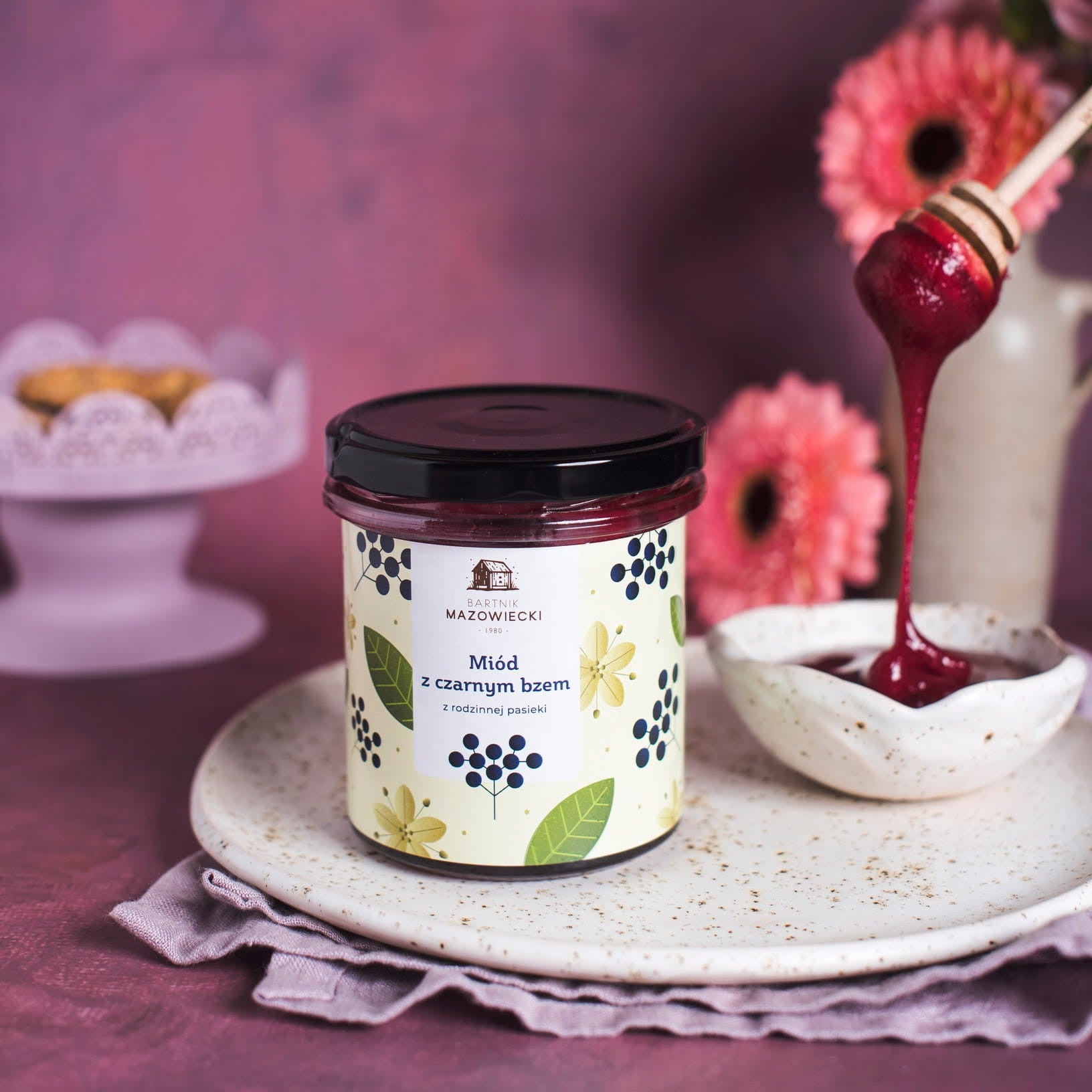Miód z czarnym bzem to wyjątkowe połączenie najwyższej jakości miodu wielokwiatowego z naszej rodzinnej pasieki na Mazowszu oraz owoców czarnego bzu.
